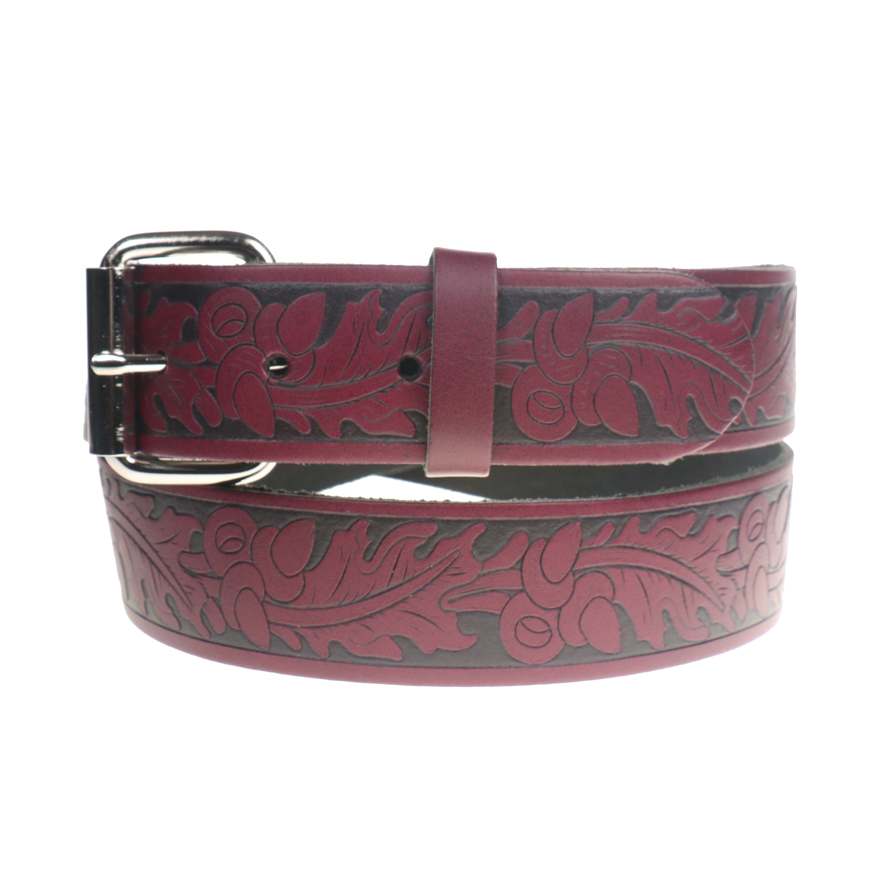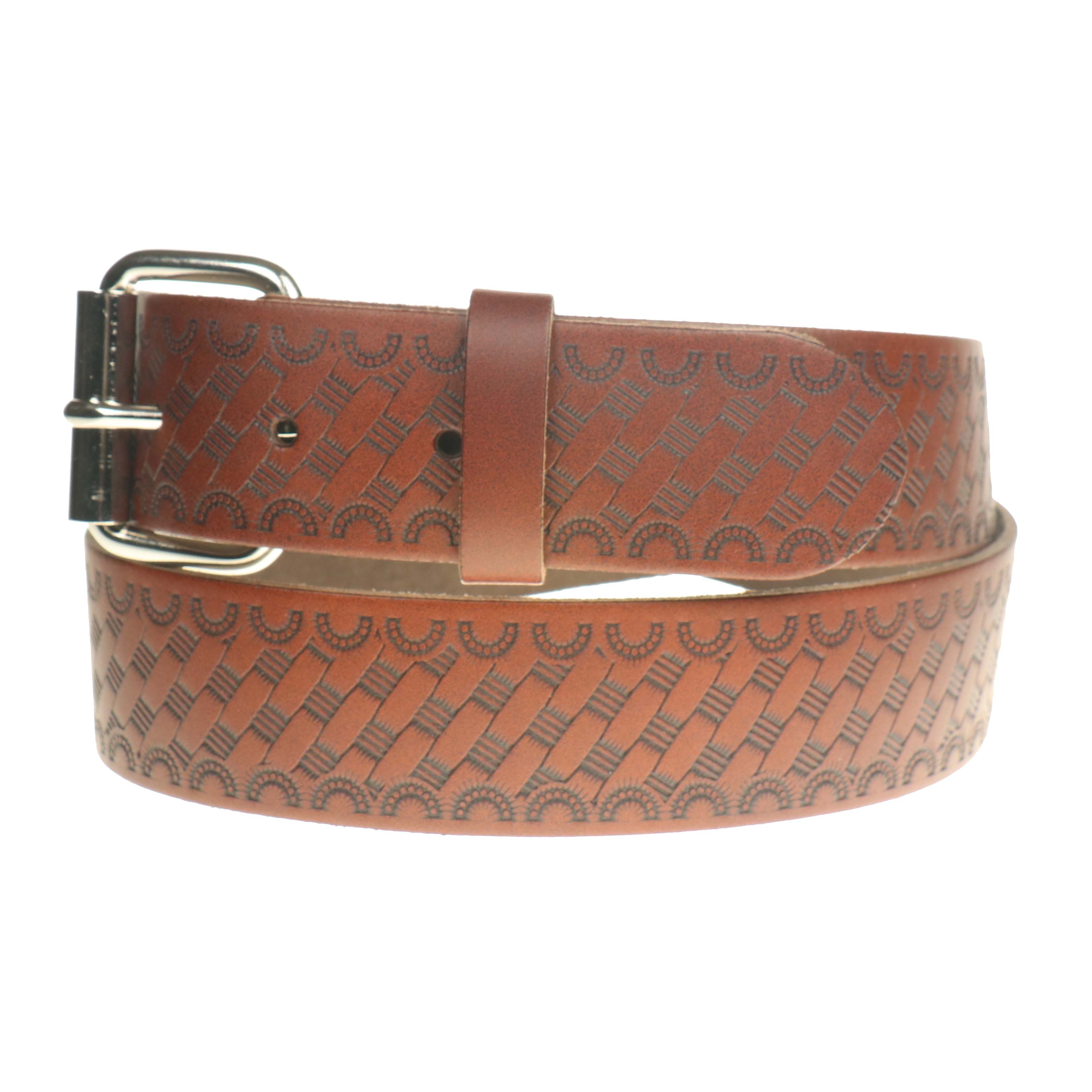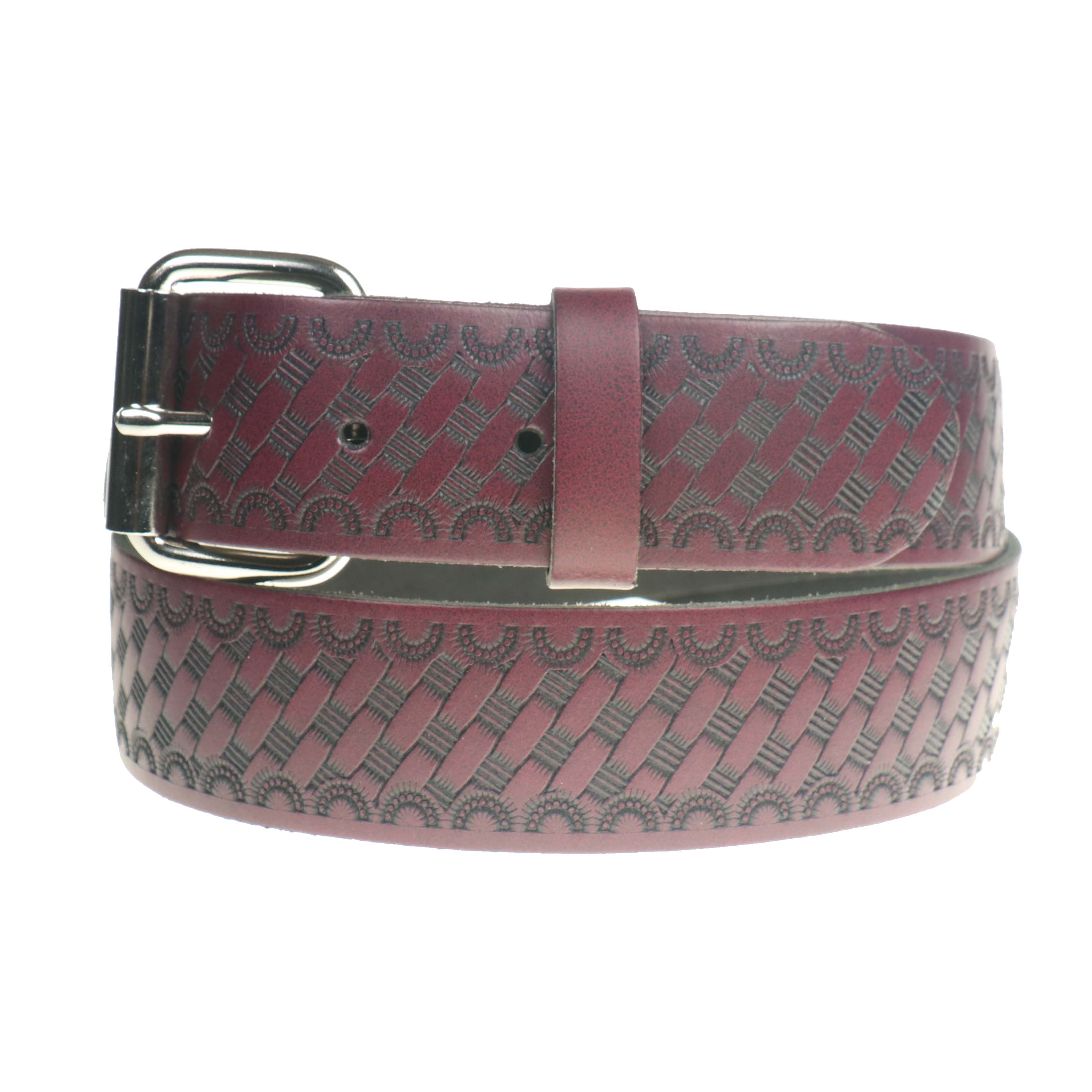LEATHER BELTS - Press Stud Embossed Belts Click icon to see full range of colours  Click here to view colour image