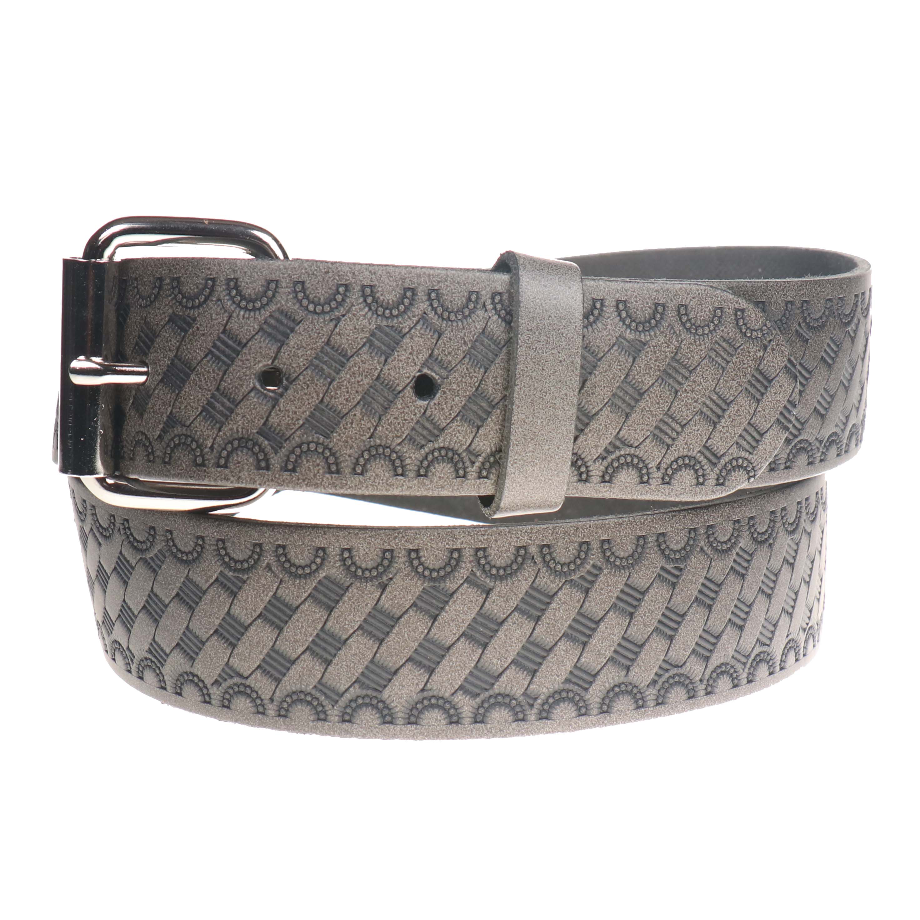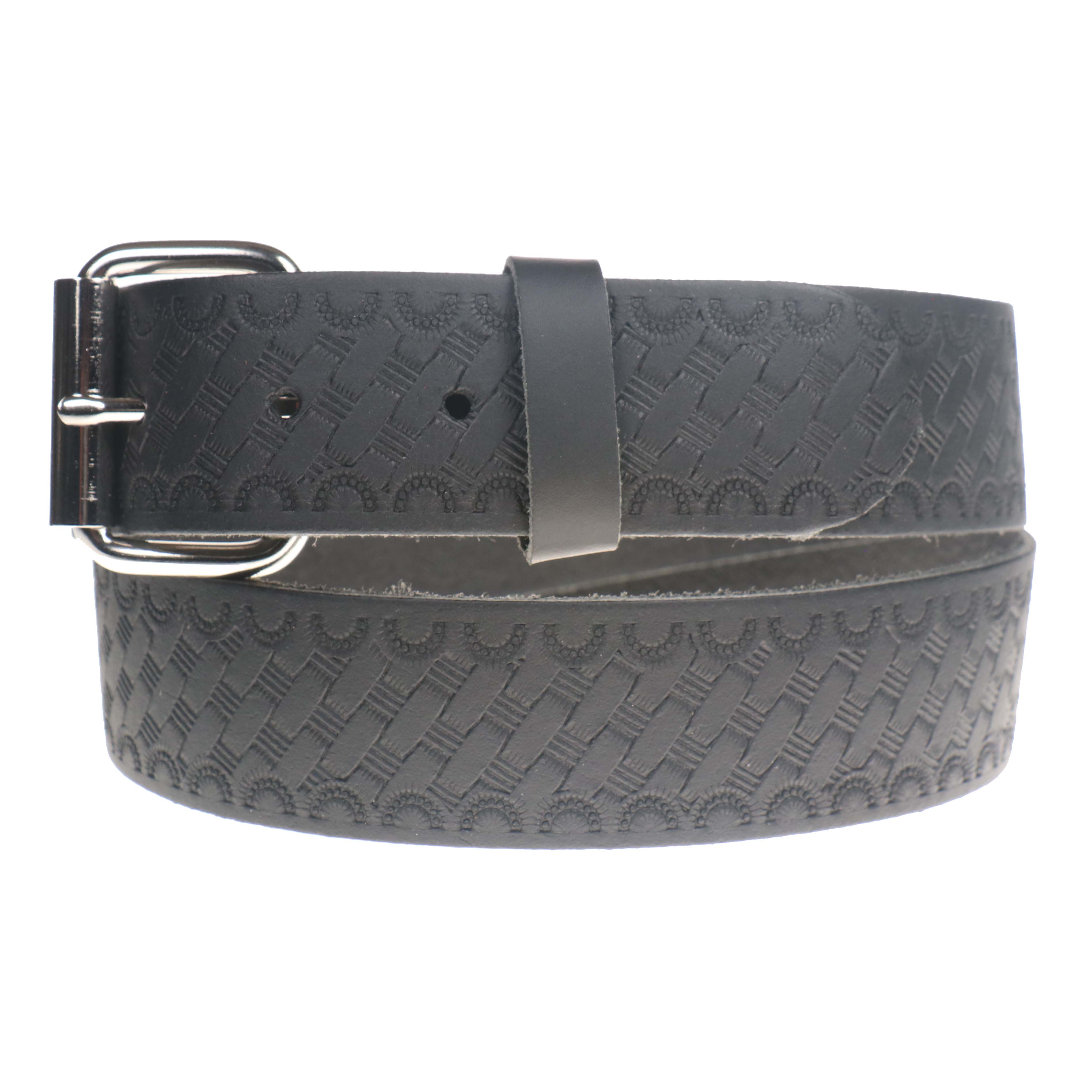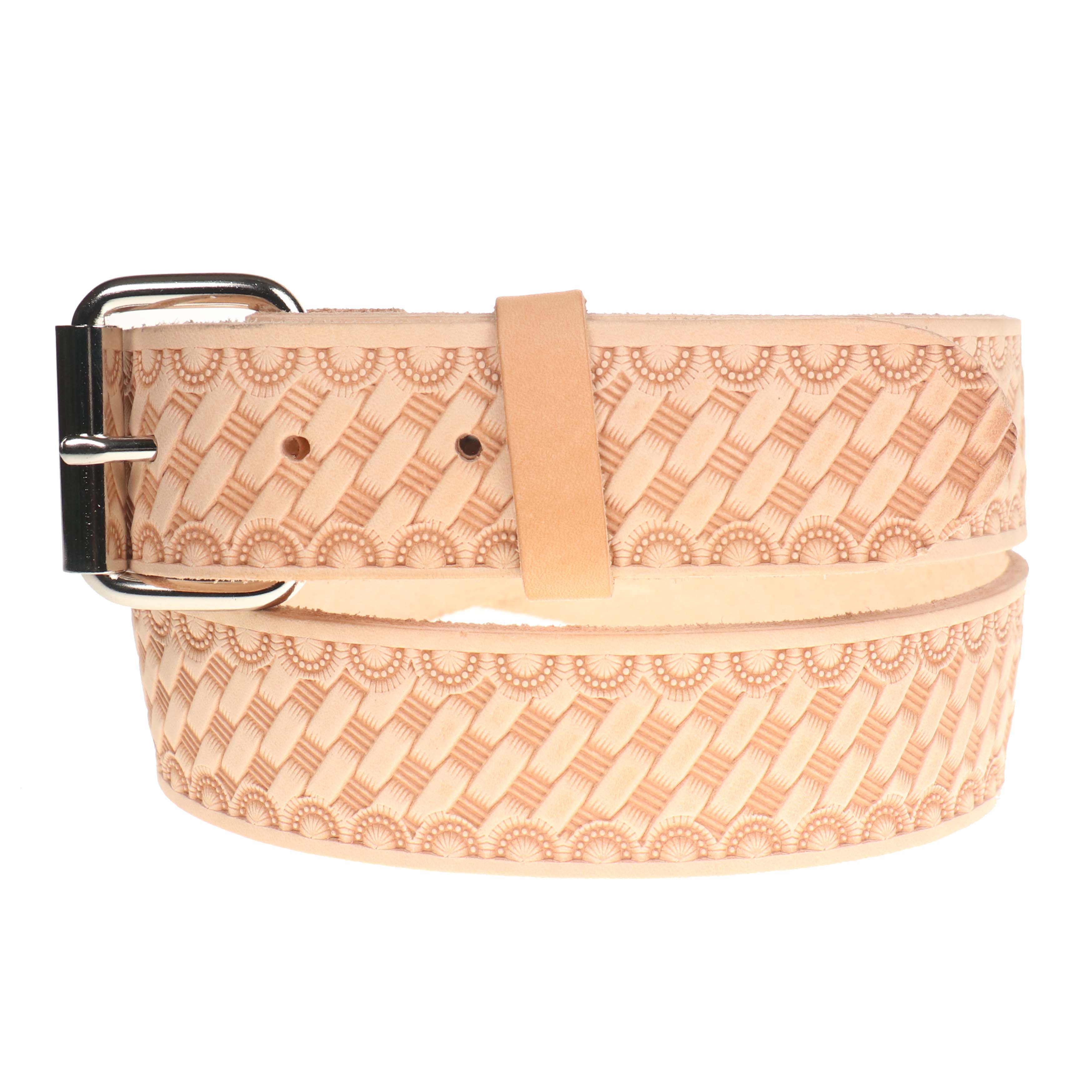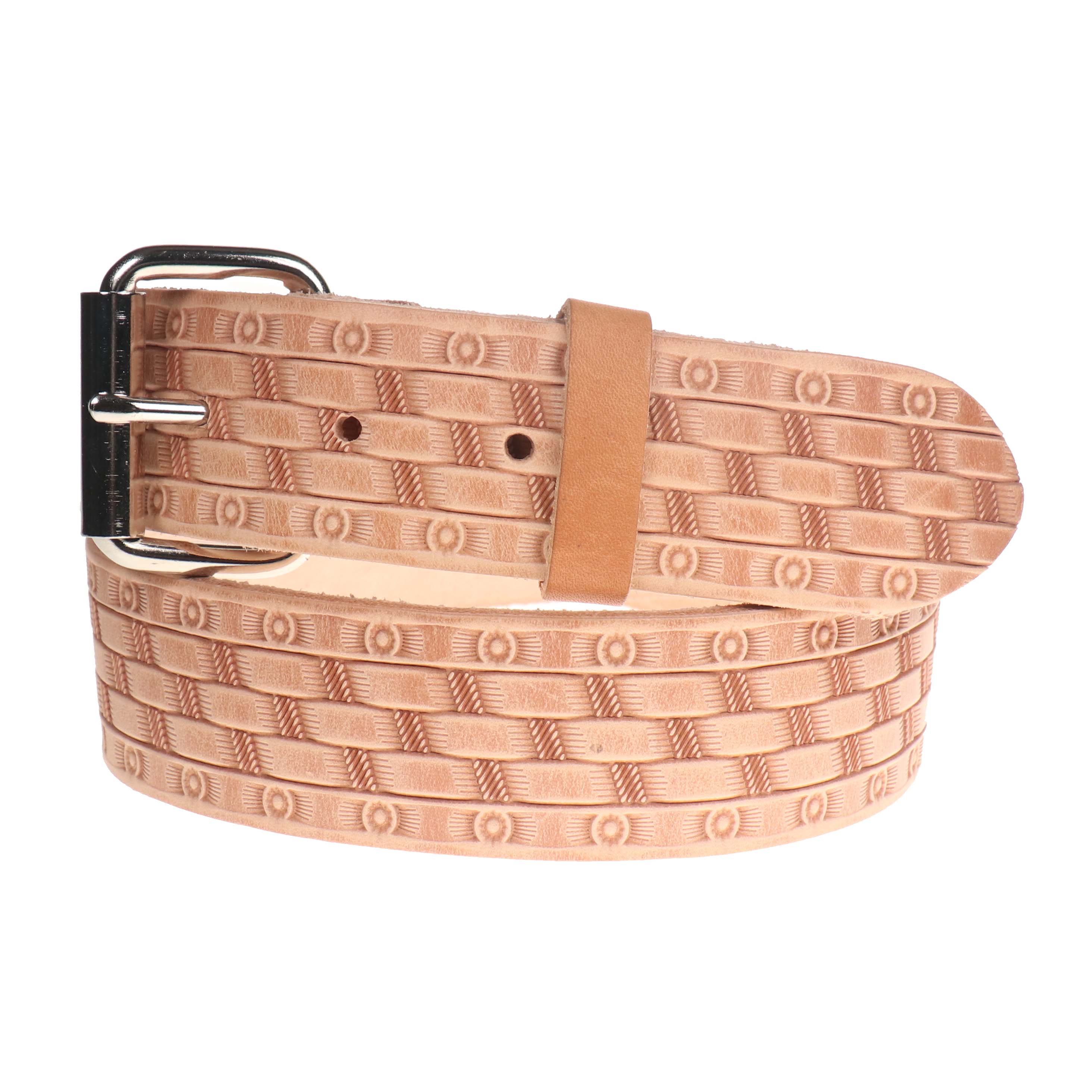 LEATHER BELTS - Press Stud Embossed Belts Click icon to see full range of colours  Click here to view colour image