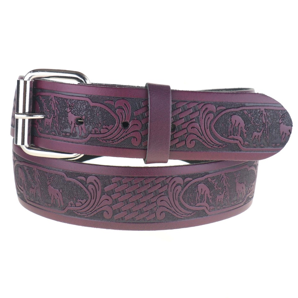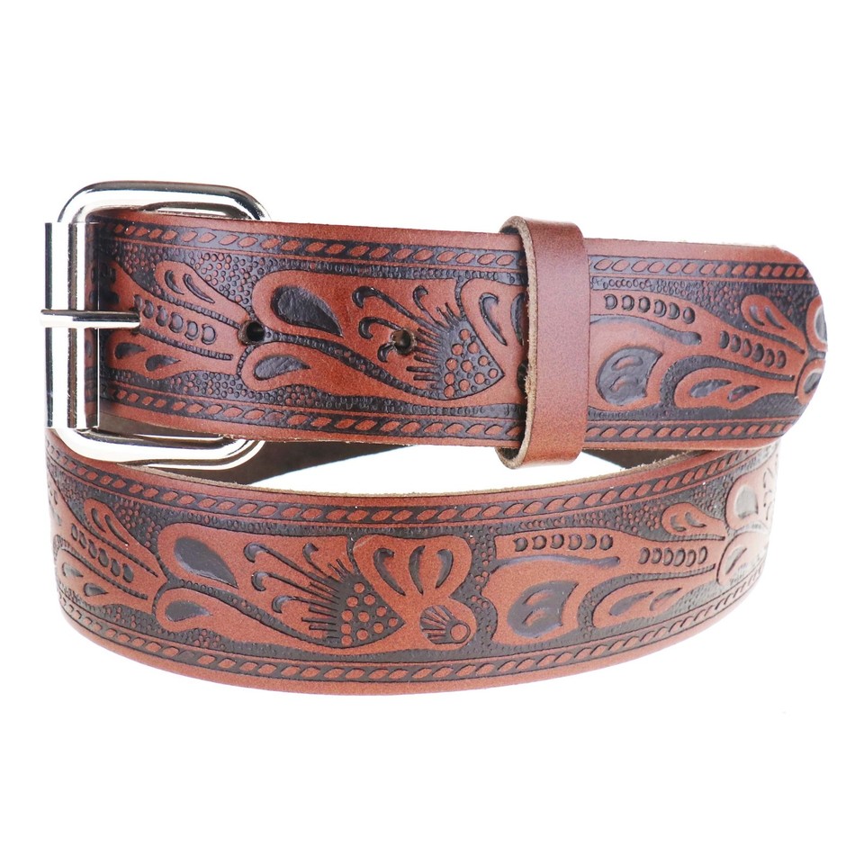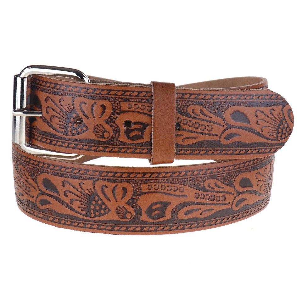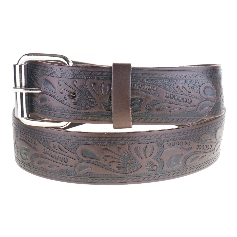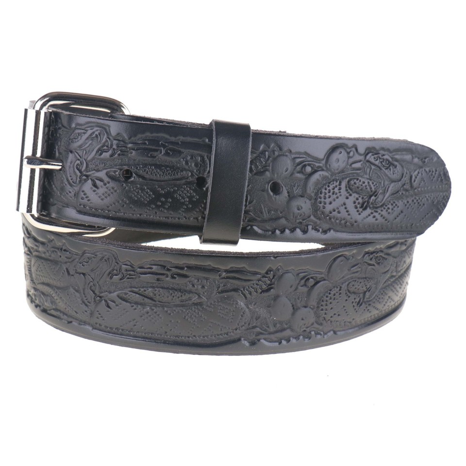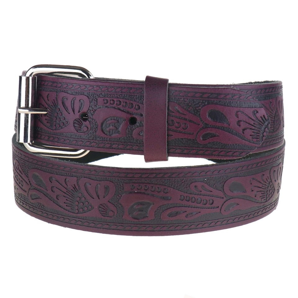 LEATHER BELTS - Press Stud Embossed Belts Click icon to see full range of colours  Click here to view colour image