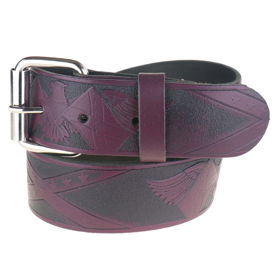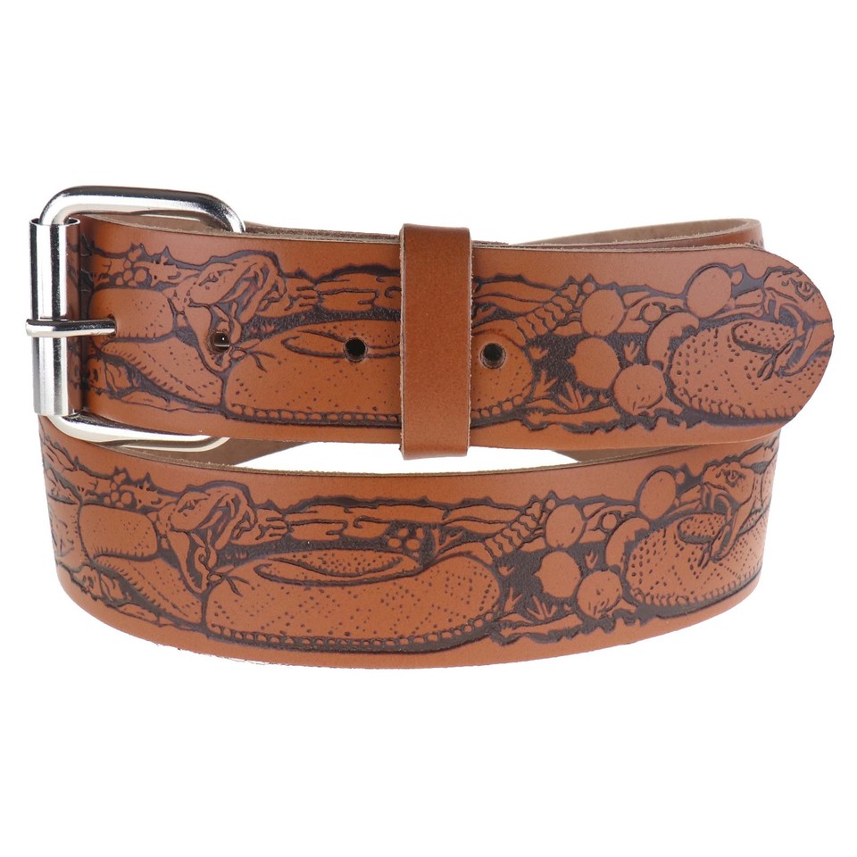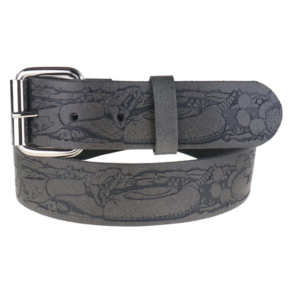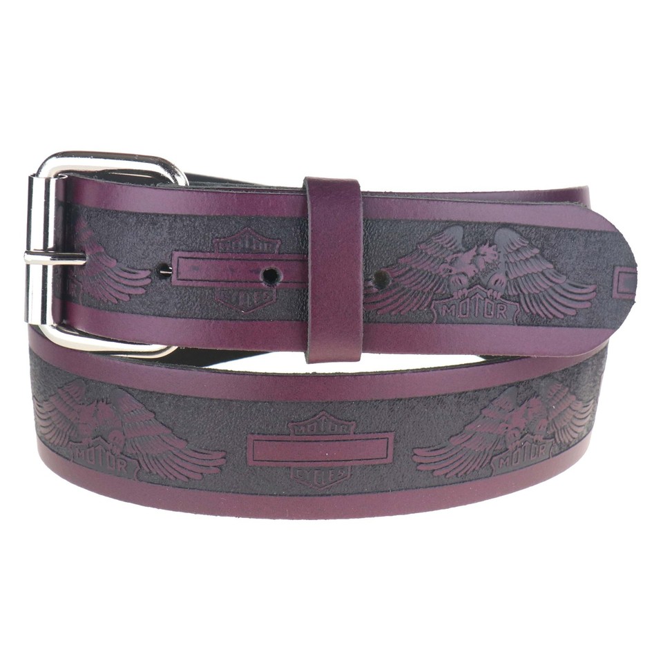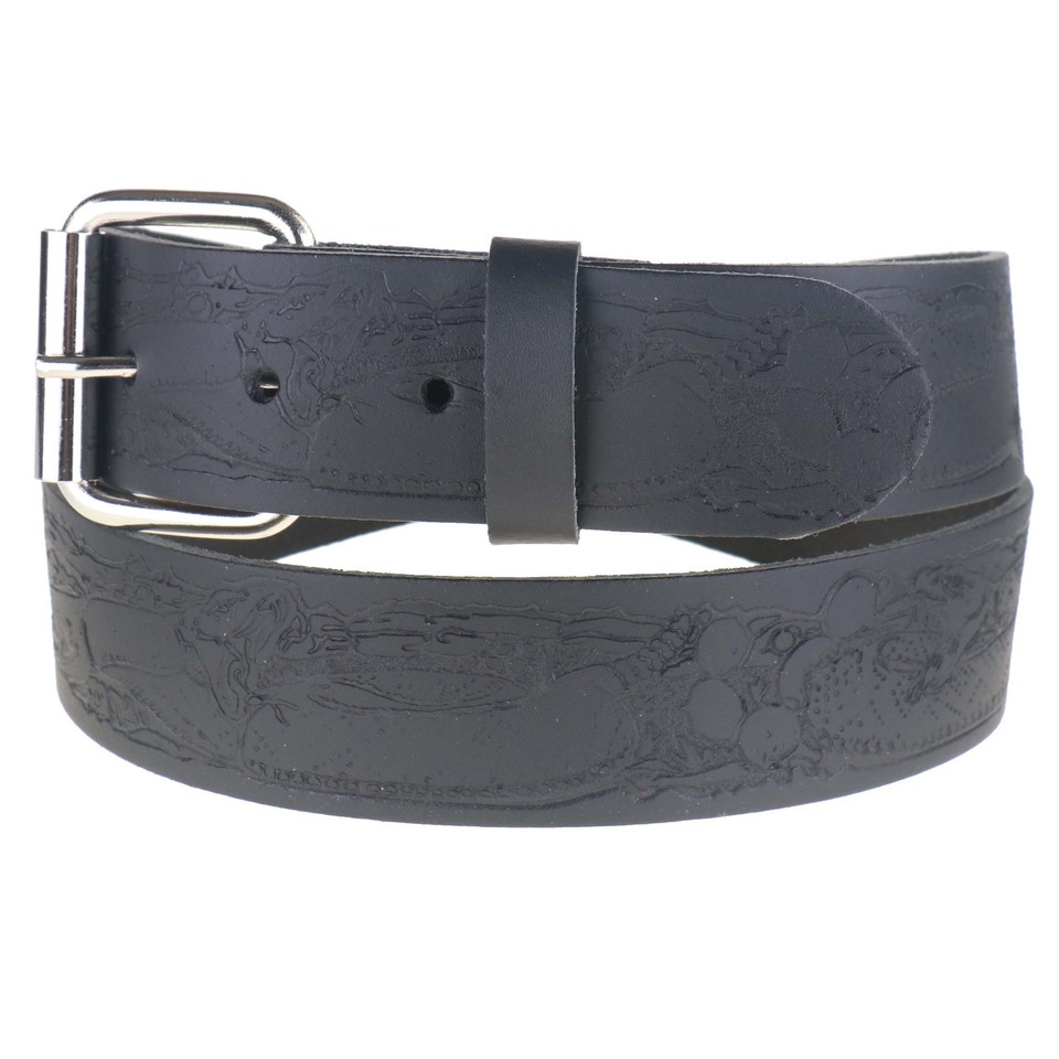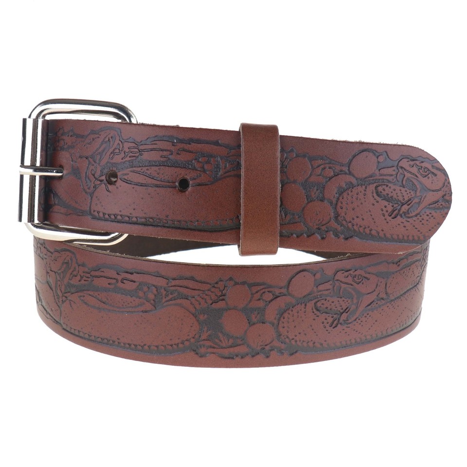 LEATHER BELTS - Press Stud Embossed Belts Click icon to see full range of colours  Click here to view colour image
